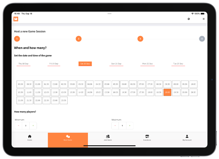 Choose the time and date you want to schedule your game night and post it on MeepleMatch