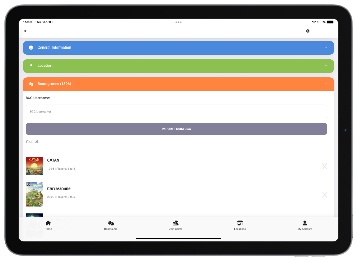 Import your games from BGG easily just by adding your username. You can then add and remove games